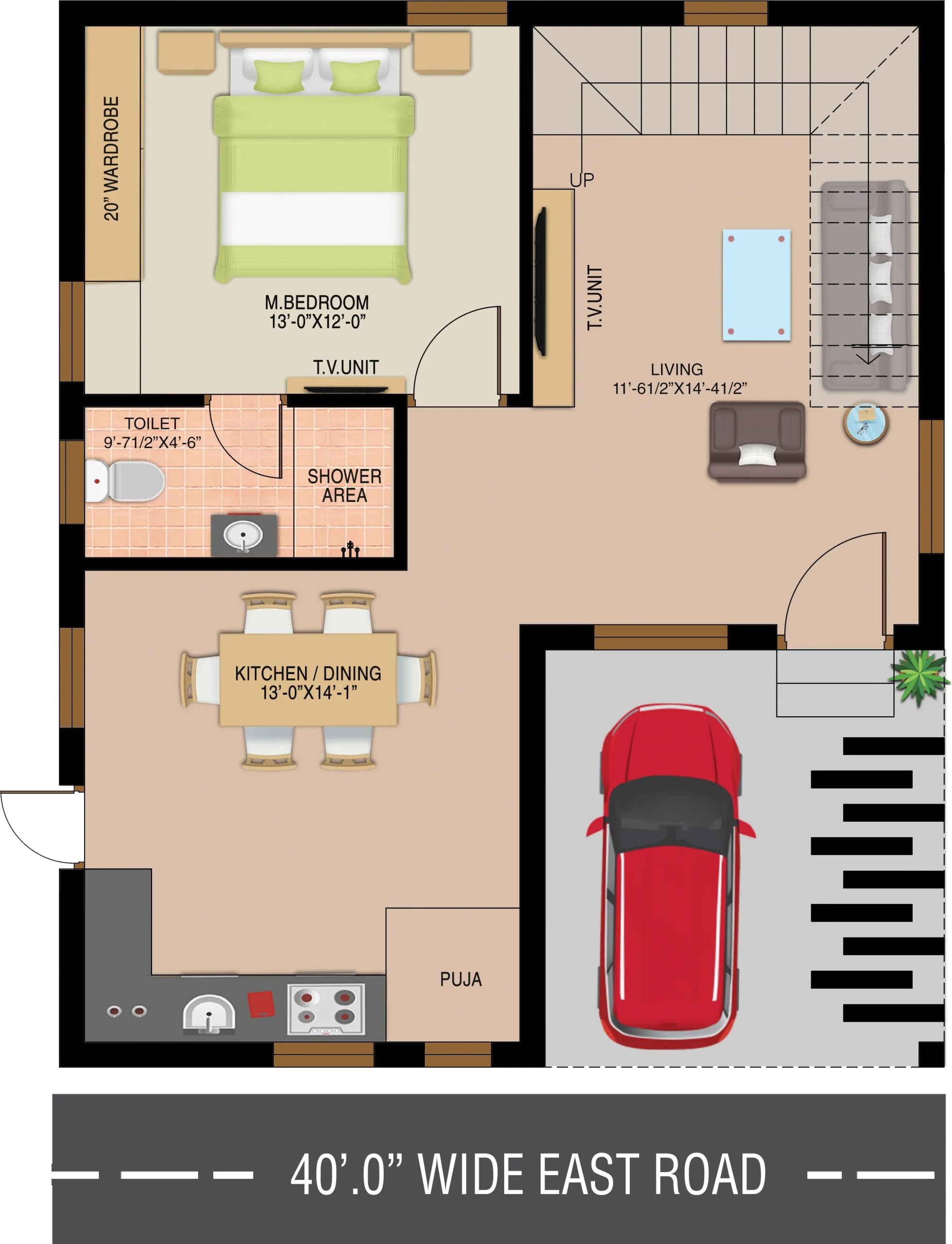 Our thoughtfully designed homes are crafted with precision, following Vastu principles for harmony and positivity. These cozy 2 BHK homes, ranging from 500 to 1250 sqft, are ideal for your small and joyful family. Each home includes a dedicated parking space for your convenience. To ensure your peace of mind, the entire community is equipped with CCTV surveillance and a single, guarded entry point for enhanced security.
